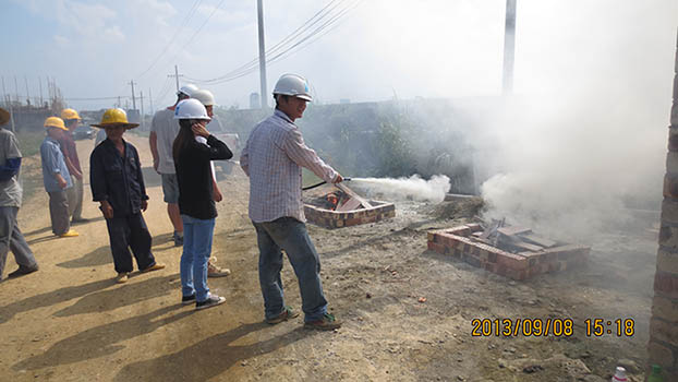 本次培训由分公司生产科科长朱其绎主讲,他以事故分析的方式讲解了基本消防知识、工地一般火灾自救逃生的方法和火灾逃生需注意的安全事项等等。通过培训,参训人员对消防知识有了更深地认识,提高了群防群治的能力。最后,项目经理丁跃带领大家进行了现场灭火器操作演练,每位参训员工通过演练,均掌握了灭火器的使用方法。本次活动既普及了消防安全知识,又提高了项目员工的消防安全意识,强化了消防安全的理念,提高了大家的消防安全的技能。