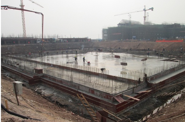 钦州学院新校区建设项目文科区宿舍楼及食堂工程由六分公司承建,节前正值基础混凝土浇灌施工,该项目基础的工作量大,垫层11000m2、防水11000 m2、钢筋绑扎586吨、砼5576 m2,属于大型筏板基础浇筑施工,而又正值节前施工,举国上下洋溢着回家过年的浓浓气氛,在这种氛围的感染下,项目工地的农民工兄弟也归心似箭。但是正值项目工程基础施工,必须连续浇灌混凝土,项目员工不能马上放假,而且必须于大年三十前完成基础施工。在这种情况下,项目部认真做好动员工作,采取非常办法、非常措施,特别是在财力上确保资金到位,并且为要回家过年的员工预购好车票,使项目部农民工兄弟能放心工作。在项目部全体员工的努力奋战下,经过15天的紧张施工,于1月27日完成该项目基础浇筑施工,完成施工产值680万元,创造了六分公司短时间内完成施工产值的最高纪录。