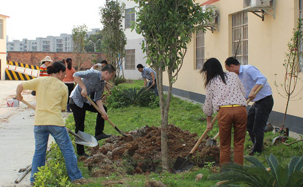 公司员工栽花种树美化家园