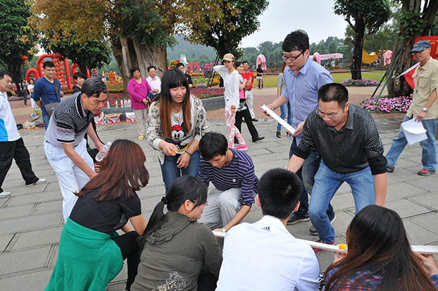 活动中,参加培训的团员青年现场组队,并由各自的团队确定队名、队旗、队歌、队形等,在整齐划一中比作风,在行动迅速中比效率。随后,“小三队”、“Yeah队”、“非诚勿扰队”三支团队围绕集体的利益展开了激烈比拼。“鼓动人心”、“珠行千里”、“支援前线”、“A点到B点”等一系列项目陆续展开,这些表面看似普通的游戏实则蕴藏着深厚的管理理念,每个项目都给大家以深刻的启迪,可以说是“小游戏见证大道理”,使参与的青年员工从活动中悟出团队的力量、团队的感情和团队的幸福,充分展现了公司青年积极向上、勇于挑战、团结协作、阳光活力的风采,锻炼和提高了青年员工的身体素质、自我奉献的品质和团队的凝聚力。