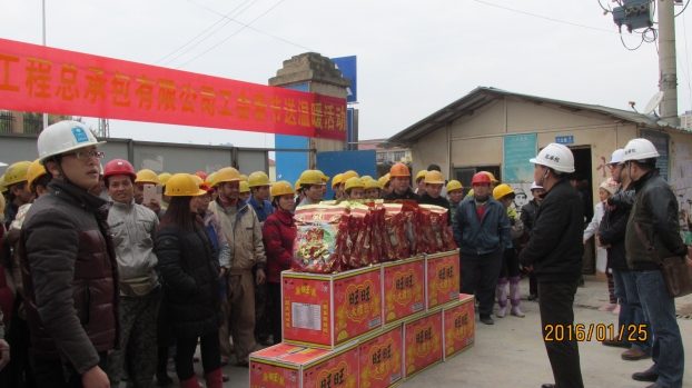公司慰问组还先后赴五象湖小学项目部、凤江绿缘项目部和和德村一组三产综合楼项目部等在建项目,向农民工兄弟表达新春祝福,对他们一年来辛勤劳动表达感谢,并将慰问品一一送到了农民工兄弟的手中。