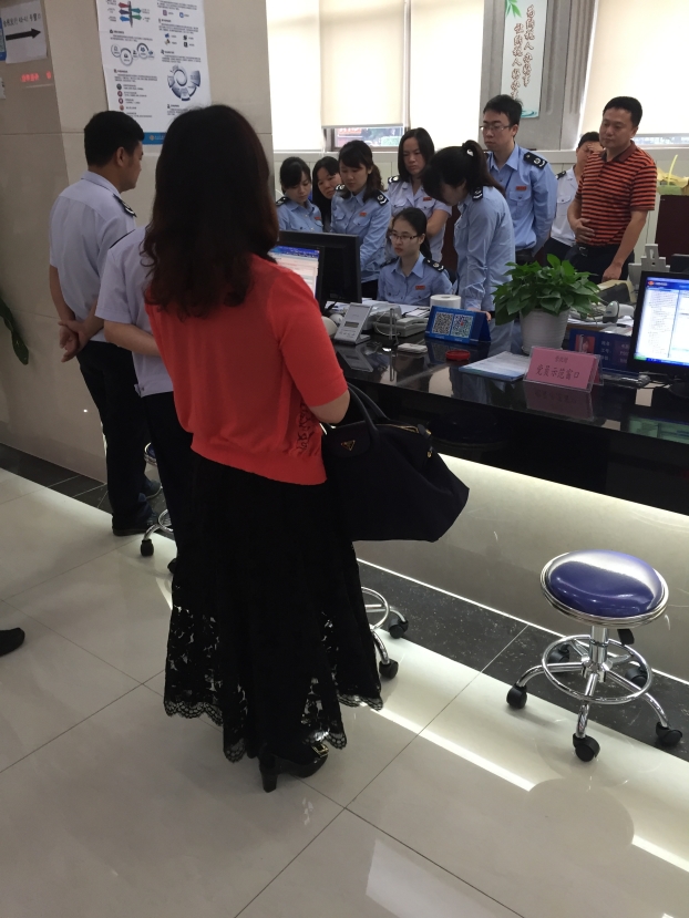 上午9点,在国税局工作人员的引导下,广西建工总承包公司深圳分公司南布临时办公室装饰装修工程项目财务人员蔡喜如来到业务办理柜台,工作人员正式开始为我公司开具发票。但由于系统方面的问题及工作人员经验缺乏,发票一直未开出。此时,坪山新区国税局蔡局长、黄局长也亲临现场指导、协助,工作人员不停地打电话咨询后台技术人员并且不断尝试。终于在11点,经过国税局全体工作人员不断地努力,我公司成功拿到坪山新区国税局开具的第一张跨区增值税发票。这一时刻也标志着坪山国税局营改增试点工作全面铺开。