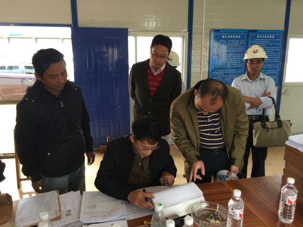 11月23日上午,自治区建设工程质量安全检查组一行到二分公司伏波大道项目工程开展2016年第二次巡检工作。公司总经理、党委副书记陆烜,安全处、项管处负责人和第二分公司安全总监、副经理,项目部相关负责人、甲方代表、监理方代表等全程陪同。