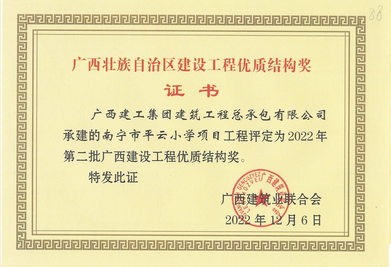 近日,广西建工集团建筑工程总承包有...