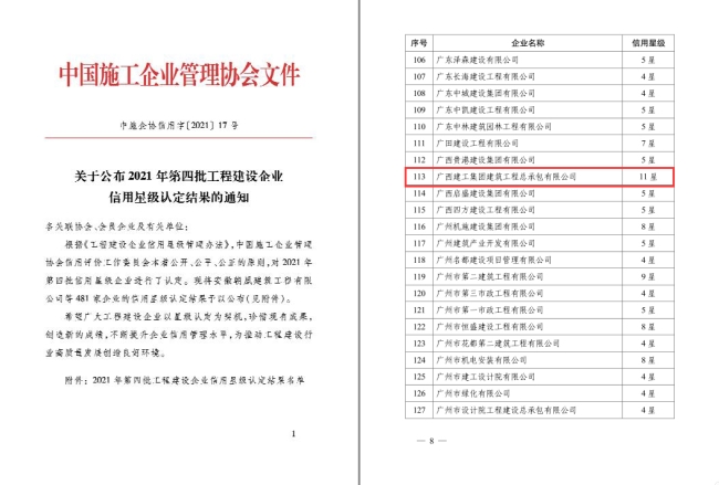 近日,中国施工企业管理协会信用评价...